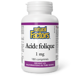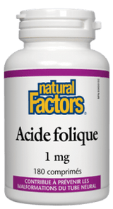 Natural Factors Folic Acid delivers 1 mg of folate per tablet, and is more bioavailable in supplemental form than from food. Folate plays an important role in the prevention of neural tube defects when taken prior to conception and during early pregnancy. It helps in the production of red blood cells and factors in the maintenance of good health.